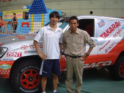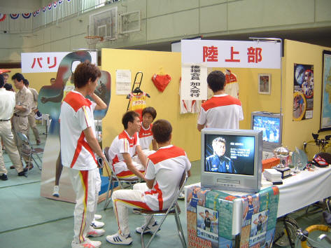 | 今日は僕の所属している会社のイベント「アラコジョイフルホリデー」にトライアスロン競技部のブースを出すということで、PRにいってきました。トライアスロンのブースでは、トライアスロン競技のビデオや資料、選手の紹介、試乗できるロードバイクなどがあり、陸上部とパリダカの「チームアラコ」とともに出展し、今回が初めての試みでしたが、結構好評でした。